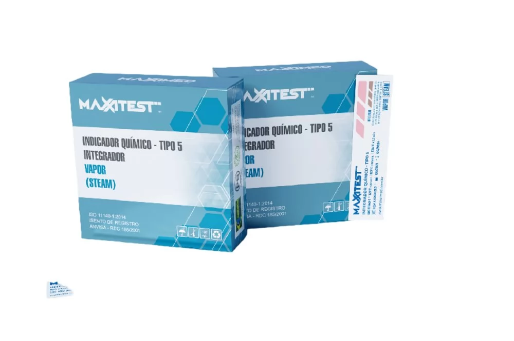 Indicadores Químicos MAXXITEST da Maxximed, isento de metais pesados, oferece simples leitura e interpretação por nítida mudança de cor. Conheça a linha de indicadores químicos MAXXITEST para esterilização por vapor saturado, peróxido de hidrogênio e formaldeído.Em conformidade com a ISO 11140, os indicadores químicos MAXXITEST estão disponíveis em embalagens com 250 unidades para tipo 5 indicador integrador, tipo 6 indicador emulador e tipo 4 indicador de múltiplas variáveis críticas.