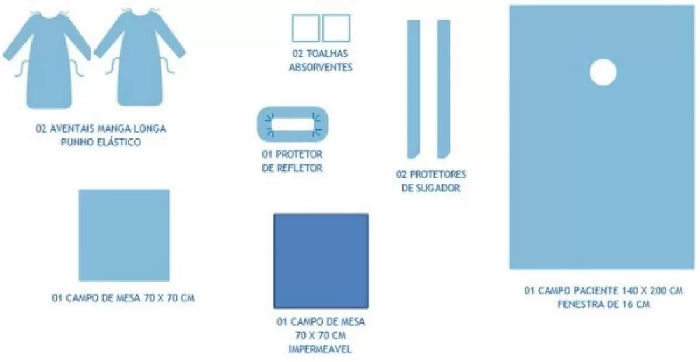 Avental confeccionado em SMS, um não tecido 100% polipropileno composto de camadas unidas por calandragem térmica. As camadas externas são desenvolvidas através do processo Spun Bonder que conferem ao material, resistência mecânica e maleabilidade. A camada interna é produzida através de Meltblown que é composta por um denso aglomerado de microfibras que proporciona uma excelente barreira contra agentes contaminantes.