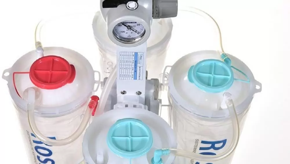Sistema integrado, ergoonomicamente correto, para aspiração e drenagem de grnades volumes de fluídos corpóreos. Segurança contra infecção hospitalar nos centros cirúrgicos.