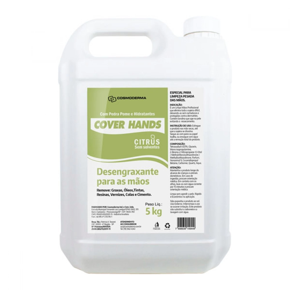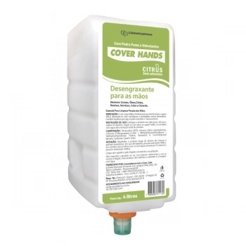 Cover Hands Citrus gel desengraxante que proporciona limpeza eficiente das mãos sem deixa-las ressecadas.