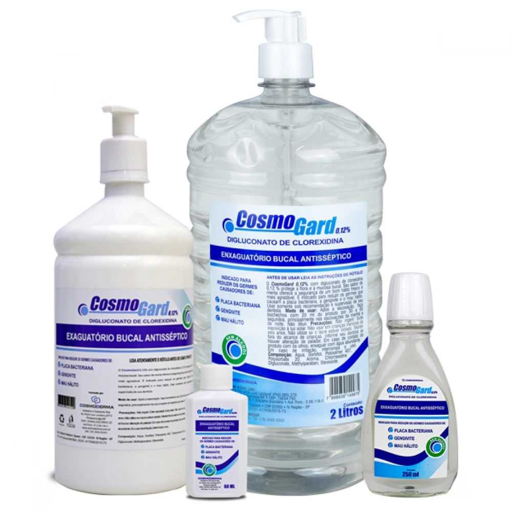 CosmoGard 0,12% é um enxaguatório bucal com digluconato de clorexidine 0,12 % protege a flora e a mucosa bucal. Seu sabor de menta oferece a segurança de um bom hálito fresco e mais agradável. É indicado para reduzir os germes que causam a placa bacteriana, a gengivite e o mau hálito.