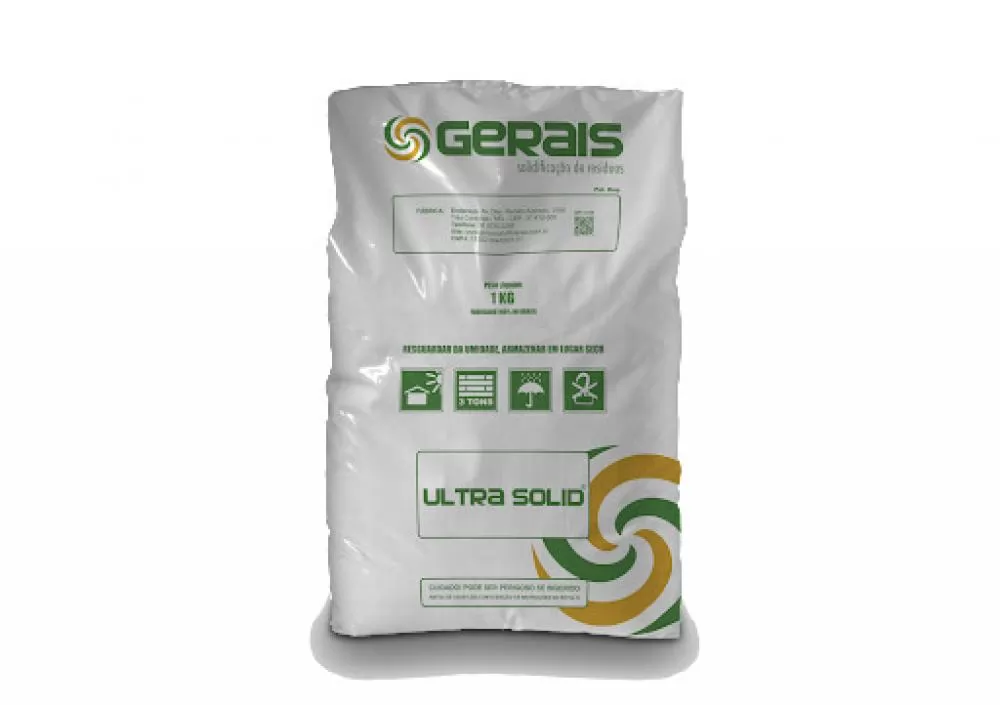 O produto ULTRA SOLID® é um composto granulado, branco e atóxico, o qual solidifica diversos tipos de resíduos com alto rendimento (1 Kg para 100 litros de água), visando um gerenciamento de resíduos mais prático, seguro e econômico.